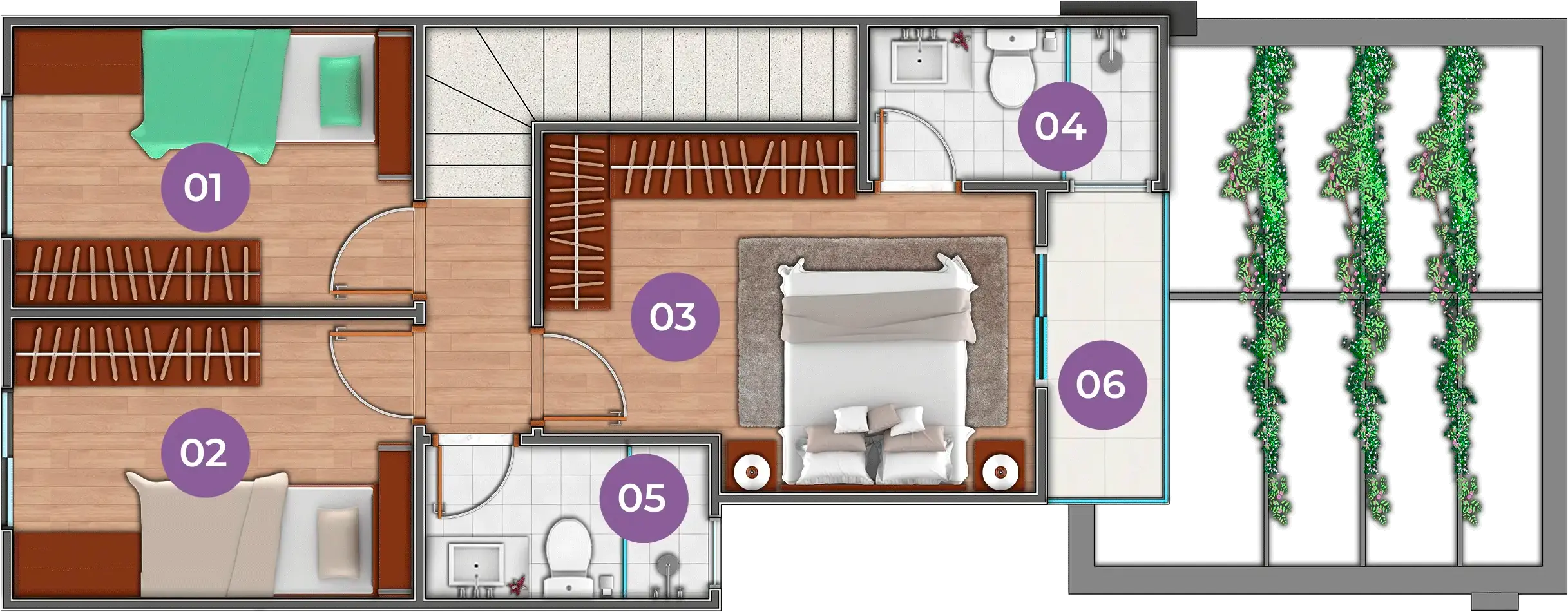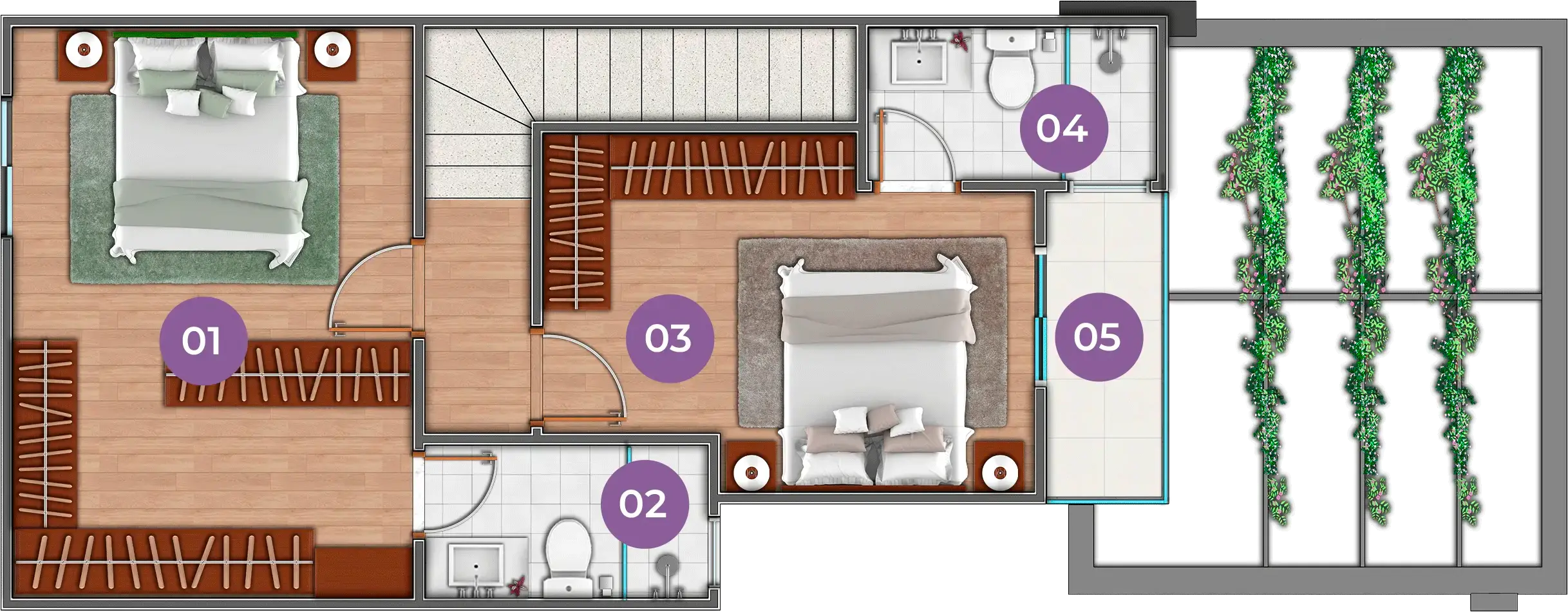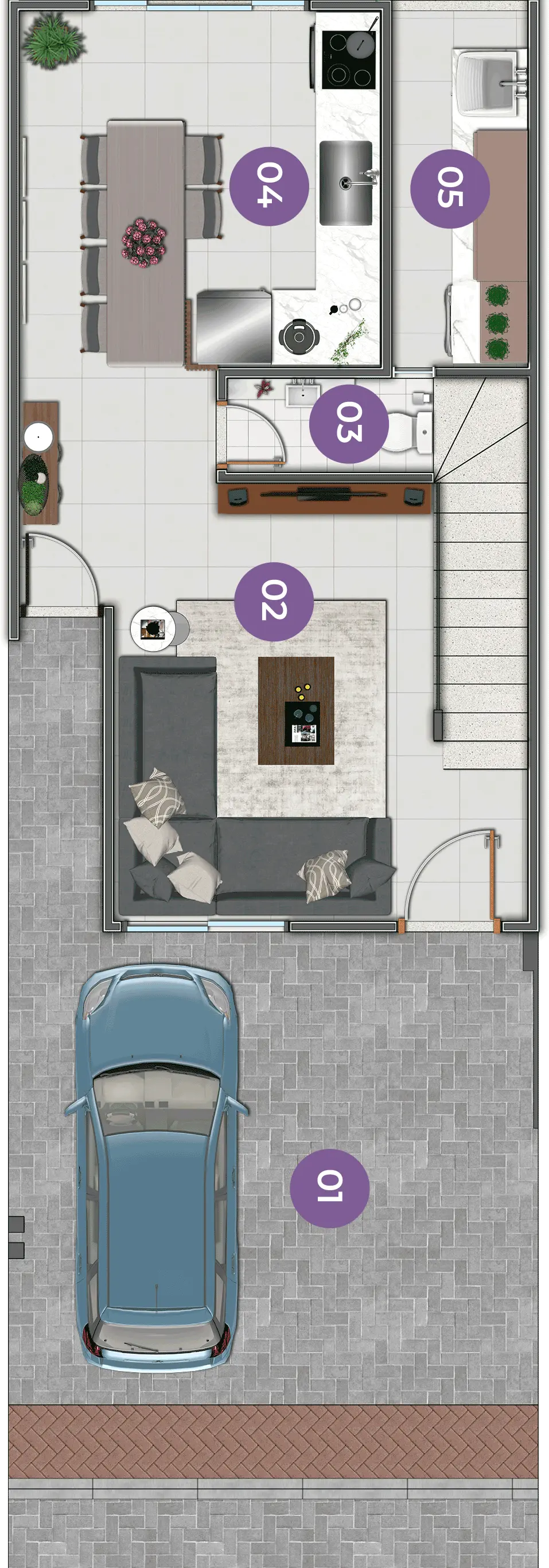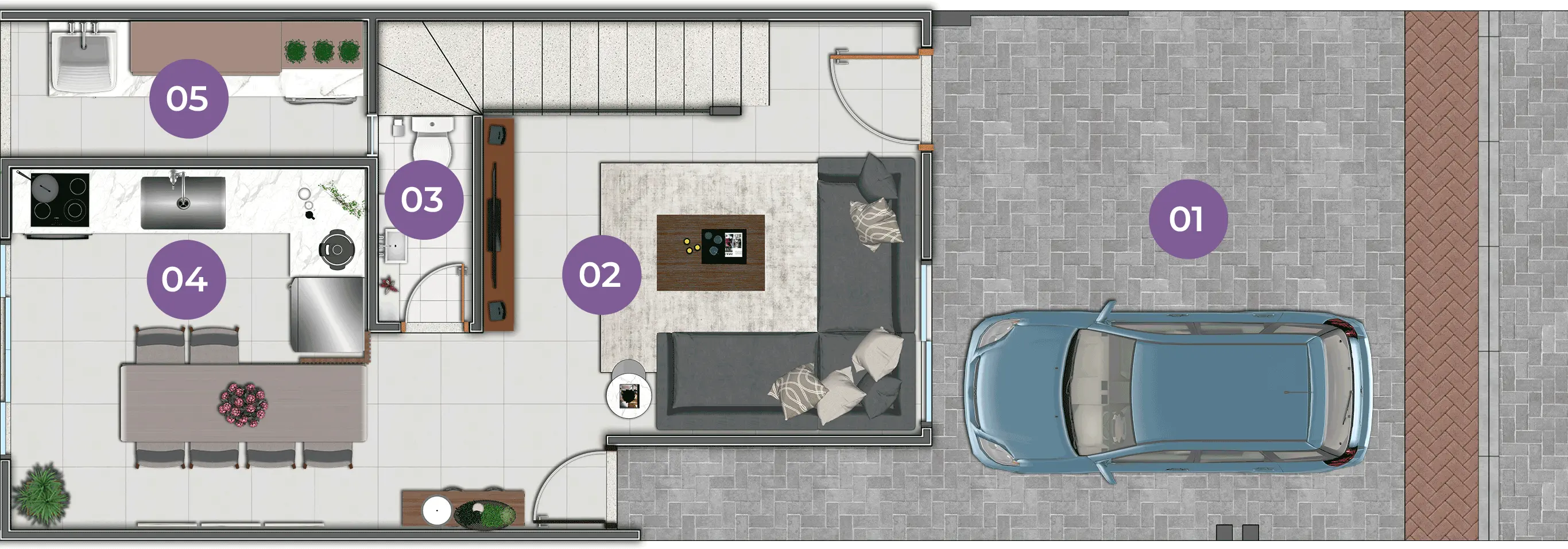 Do térreo ao pavimento superior, cada ambiente foi pensado para transformar a rotina em bem-estar diário. A arquitetura inteligente conecta o essencial à estética, valorizando o conforto, a luz natural e a liberdade de escolha.